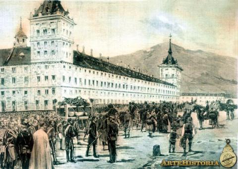 Llegada del féretro con los restos de Alfonso XII al Monasterio de El Escorial
