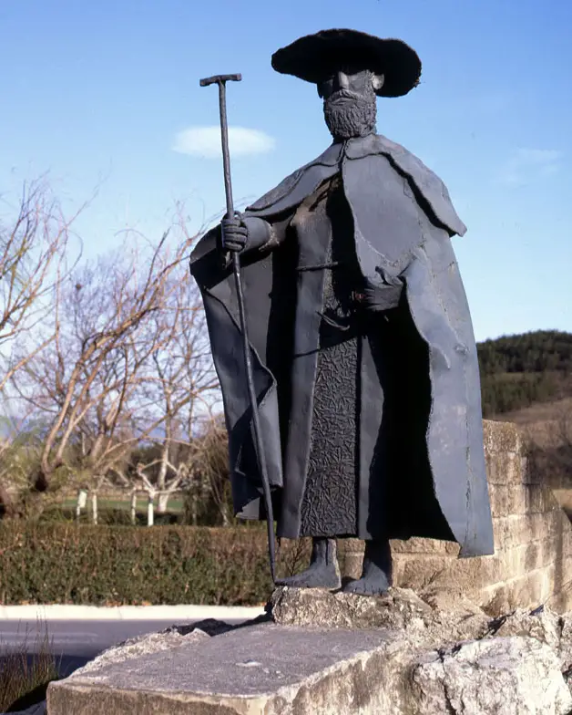 En Puente la Reina, justo donde se une la ruta jacobea procedente de Roncesvalles con la que llega de Somport -Cataluña-, se levanta el monumento al peregrino. Debajo de esta obra de 1965, realizada por Gerardo Brun, una inscripción dice: "Y desde aquí todos lo caminos a Santiago se hacen uno solo".
