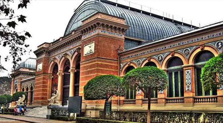Para la Exposición de Minería celebrada en 1883 Ricardo Velázquez Bosco levanta este edificio, recibiendo el nombre actual de palacio de Velázquez en honor a su autor. Se trata de un edificio simple en el que el arquitecto no renuncia a su disposición favorita, empleada también en el Ministerio de Agricultura: fachadas, comúnmente amplias, acotadas por pabellones esquineros y un cuerpo central bastante ampuloso, igualmente resaltado. El salón central se cubre con una cubierta metálica que permite el paso de la luz. Las arquerías de las fachadas principal y laterales, de clara inspiración clásica, y los elementos cerámicos decorativos, pintados por Daniel Zuloaga, se convierten en indiscutible señas de identidad.