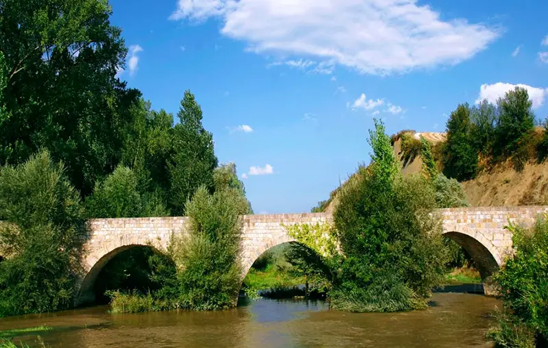 El río Arga a su paso por Burlada es salvado por un puente construido en época medieval, constituido por seis arcos de medio punto. Se trata de un puente de longitud considerable, unos 80 metros, que salva con creces la anchura del río en este punto. A lo largo del tiempo ha sufrido diversas modificaciones en su estructura primitiva, considerándose que la forma original era más apuntada. Cada uno de los seis arcos tiene una longitud de nueve metros, sostenidos en la zona de aguas arriba por tajamares de diferentes formas.