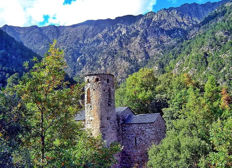 Aunque no se trata de una obra estrictamente románica, introducimos este recinto fortificado y su iglesia por qué hasta hace muy poco se consideraba que pertenecían a este estilo. Se encuentra sobre el pueblo de Santa Coloma, en la parroquia de Andorra la Vella. Parece ser que cuando Sunifred I, se hizo cargo de Andorra en el año 843, el castillo ya formaba parte de la red de fortificaciones y castillos que protegían los valles andorranos. En 952, en el acta de consagración de la iglesia de Sant Martí i Sant Feliu de Castellciutat, el conde Borrell donó el castillo y la iglesia de Sant Vicenç a la citada iglesia. En 1099 pasó a manos del cenobio de Sant Serni de Tavèrnoles, aunque el castillo continuaba en poder del conde de Urgell. A partir de este momento se produjeron muchos enfrentamientos entre los condes de Urgell, los señores de Castellbó, los condes de Foix y la diócesis de Urgell. Todo culminó con la signatura de los Pareajes de 1278 y 1288, en los que se acordó la destrucción del castillo. Sólo quedó en pie la iglesia que siguió en activo hasta el siglo XVIII. En 1852 el coronel Ulrich realiza un informe a instancias de la reina Isabel II de España en el que comenta que la iglesia de Sant Vicenç está abandonada. Nos han llegado muy pocos restos del Roc d´Enclar, quizás por la destrucción acordada en el Segundo Pareaje de 1288. El recinto estaba protegido por una muralla que seguía el perímetro natural del promontorio. La construcción principal era la torre que se encontraba en la parte más elevada del mismo. Presenta planta cuadrada y aparejo más grande que el resto de las construcciones. Existen otras edificaciones mucho más sencillas con sillares mal tallados y levantadas con muros de piedra sin mortero y cubiertas de madera. Digna es de mención la construcción que se encuentra al norte de la iglesia, en donde se localiza un depósito para la fermentación de vino.
