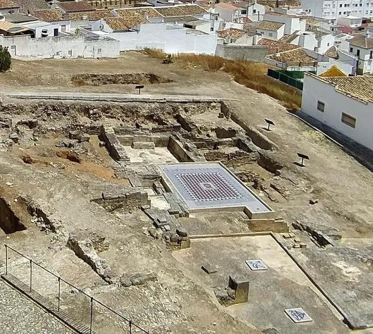Ubicadas a los pies de la Colegiata de Santa María la Mayor, las termas fueron descubiertas por casualidad el verano de 1988. Se trata de un complejo termal de carácter público, con unas construcciones fechadas en torno al siglo I d.C. Son unas edificaciones de gran robustez, realizadas a base de grandes sillares y piletas de cierta extensión recubiertas de mortero hidráulico; en el exterior están revestidos de mármoles. El conjunto se completa con un gran mosaico polícromo del siglo III, en cuyo medallón se representa una divinidad marina. La importancia de las termas reside en su carácter monumental y en la confirmación de la existencia del asentamiento urbano de Antikaria, conocido hasta ese momento sólo por fuentes escritas.