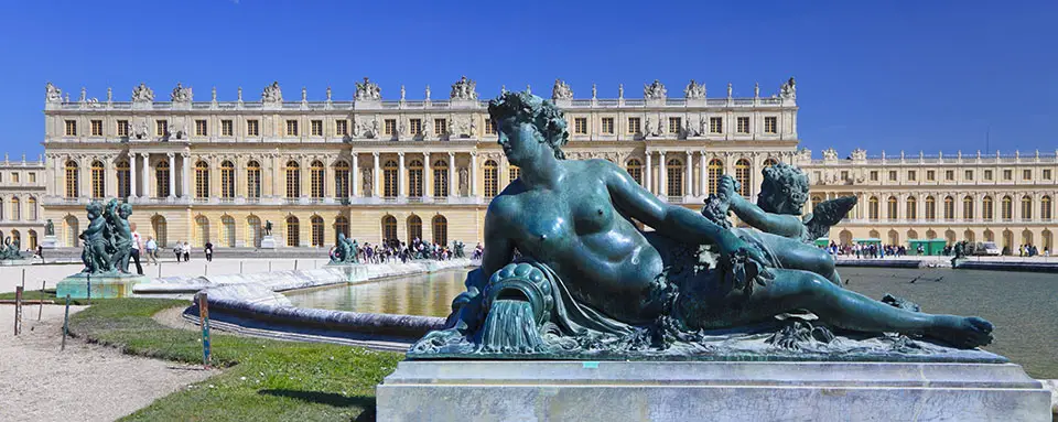 El Palacio de Versalles representará el momento culminante de la arquitectura palaciega en Europa, tanto por sus dimensiones como la magnificencia de su estructura, escenificando de manera excepcional el poder del rey absoluto. Luis XIII encargó a Philibert le Roy la construcción de un palacete en la zona de Versalles, lugar rico en caza al que acudía con frecuencia. Se trataba de una sencilla edificación dispuesta sobre una planta en forma de U. Luis XIV se encariñó con el lugar y decidió transformarlo a lo largo de tres etapas. La dos primeras ampliaciones se deben a Luis le Vau; la tercera y definitiva ampliación de Versalles, motivada por el problema de dónde alojar a las más de 20.000 personas que formaban la Corte y el Gobierno de Francia, se desarrolla entre 1678 -1715 y corresponde a Jules-Hardouin Mansart. Construyó dos inmensas alas que empalmó perpendicularmente con las alas laterales del patio, una hacia el norte y otra hacia el sur, retranqueadas y puestas en línea con el acceso al patio, ya que si lo hubieran estado con la fachada del parque hubiera resultado un frente de casi 500 metros. Deseaba remodelar la fachada que daba al parque para disponer un salón central pero la negativa del rey le llevará a realizar en esta zona la Galería de los Espejos, salón más representativo del palacio versallesco.